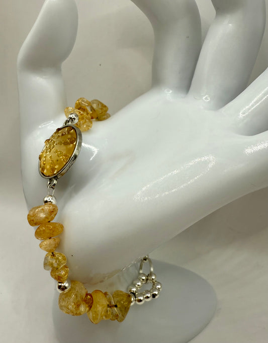 Citrine and Glass Focal Clasp Bracelet – 7.5” | Handmade Yellow Gemstone Bracelet | Sparkling Statement Jewelry