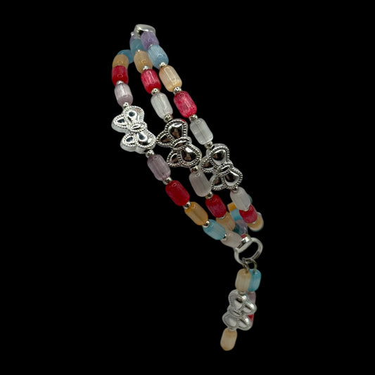 Colorful Cat Eye Beaded Wrap Bracelet with Silver Butterfly Charms | Adjustable Fit | Handmade Jewelry Gift
