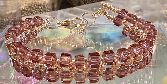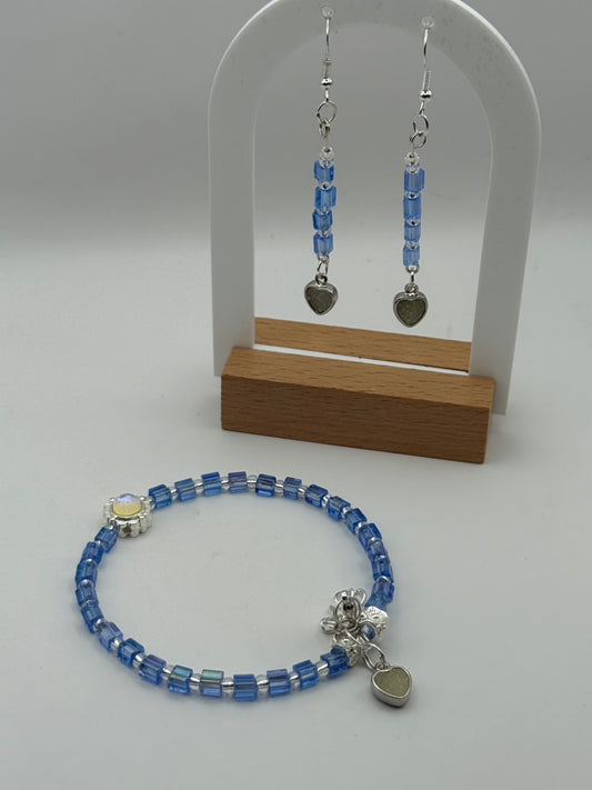 Cubed Blue Iridescent Bracelet with complimentary matching earrings 7.5"