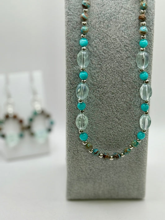 Desert Jasper and Amazonite Necklace Set – 20” Beaded Necklace with Matching Earrings, Natural Gemstone Jewelry, Handmade Gift for Her
