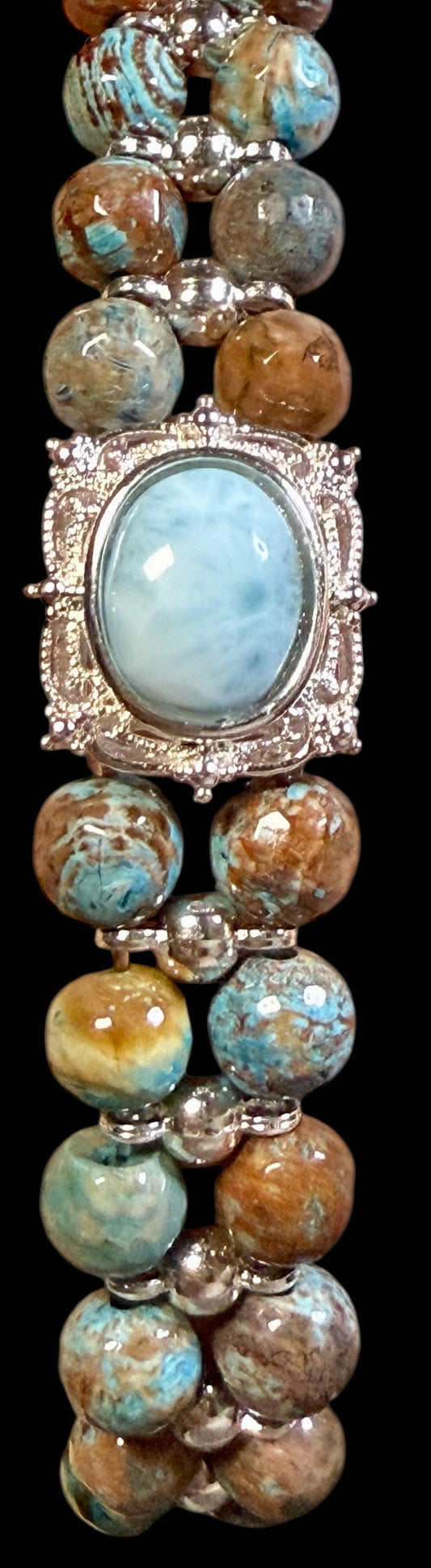 Desert Jasper with Larimar Focal stretch bracelet 7.5"