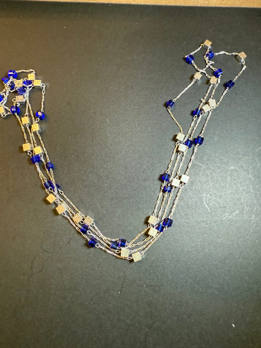DEATASH 1meter (about 39") Stainless Steel chain with cubed faceted blue zirconia.