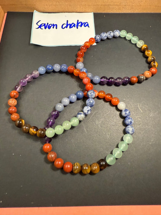 DESTASH - 6mm Chakra 7 (Carnelian, Blue Aventurine, Amethyst, Red Jasper, Tiger Eye, Green Aventurine, and Sodalite)