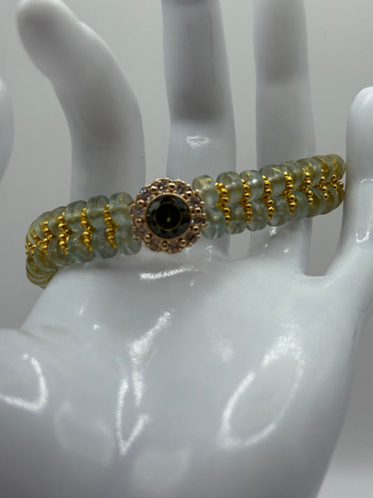 Elegant Glass Bead Bracelet – Light Green or Royal Blue with Gold Accents – Adjustable Clasp Handmade Jewelry Gift 7.5"-8.5" FREE Resizing upon purchase