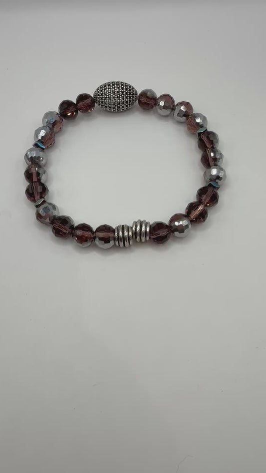 Faceted Cranberry bracelet with silver luster and gunmetal black accents 7.5"-7.75"