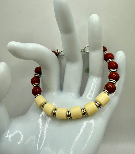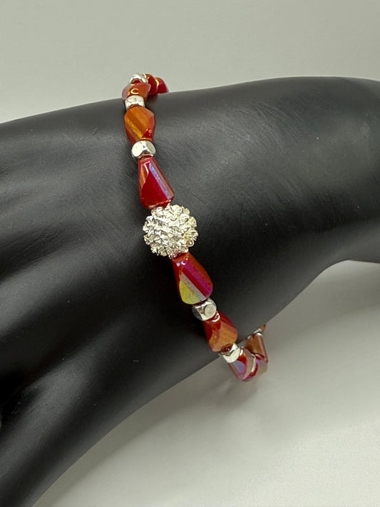 7.5” Fiery Red Glass Bead Bracelet with Sparkling Silver Accent – Handmade Statement Jewelry