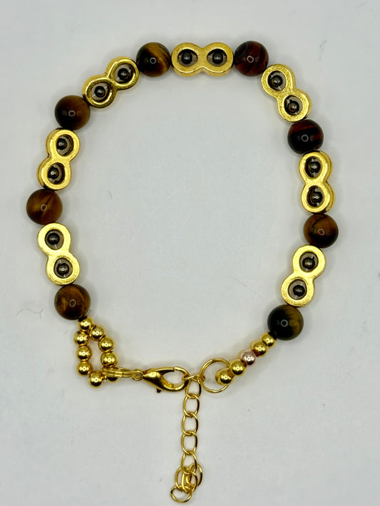 7.5” Tiger Eye and Gold Accent Bracelet – Unique Clasp Design, Handmade Gemstone Jewelry