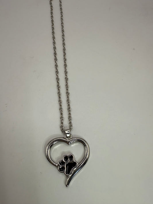Heart & Paw Print Necklace – Pet Lover Jewelry, Silver-Tone Chain