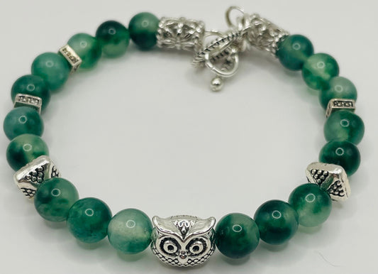 Hootie wired bracelet green and silver with toggle clasp. 7.75"