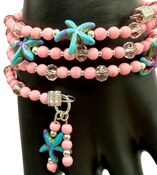 Pink and Teal Turquoise Beach-Inspired Wrap Bracelet
