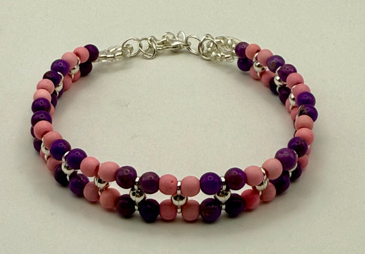 Phosphosiderite and Pink Turquoise Double Band Bracelet 7.5"
