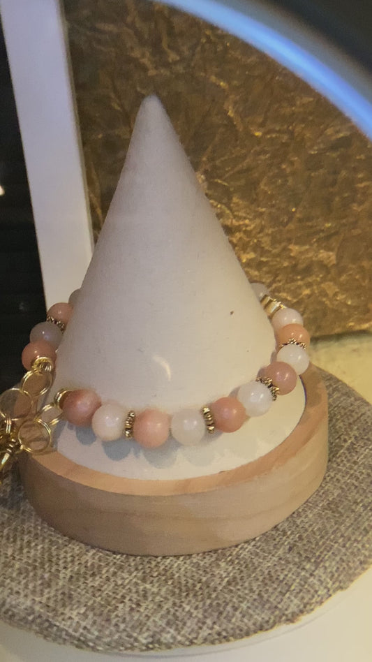 Peach Agate and Gray Quartz 10mm bracelet 7.5"