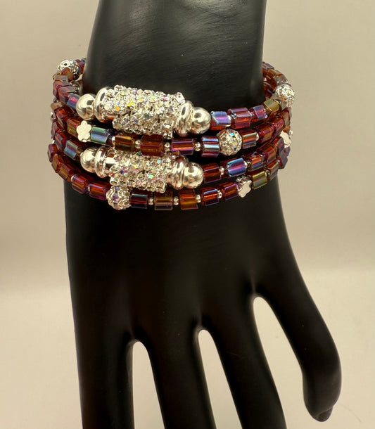 Plum and Bronze Dual Strand Beaded Bracelet – 7.5” Sparkling Focal Bracelet with Magnetic Slide Clasp – Handmade Jewelry