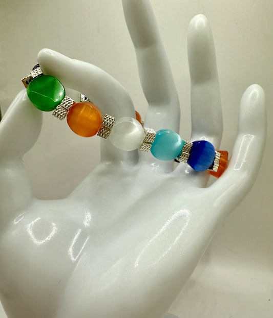 7” Multicolor Cat Eye Stretch Bracelet – Handmade, Adjustable to 7.5”, Colorful Beaded Jewelry