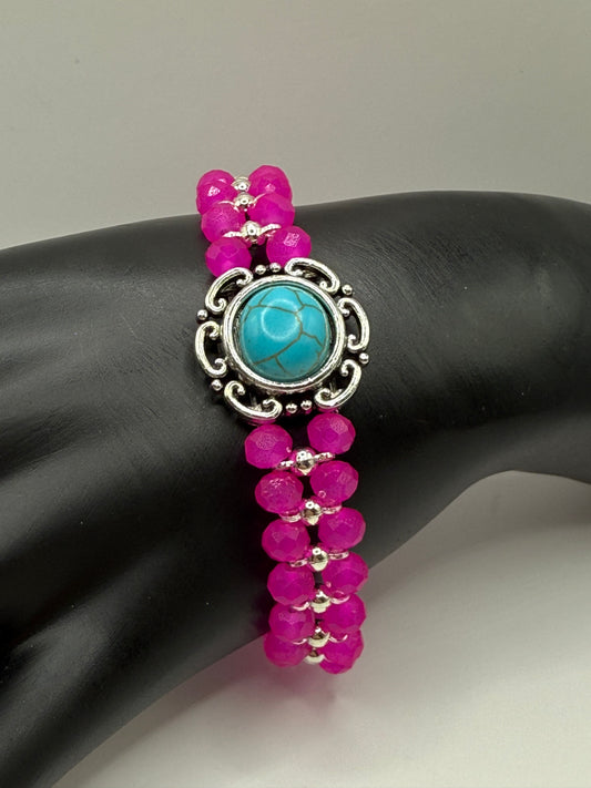 7” Hot Pink Stretch Bracelet with Howlite Centerpiece – Handmade Bold Beaded Jewelry