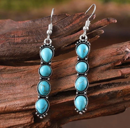 Western Turquoise Howlite Necklace & Earrings Set – 20” Silver Plated