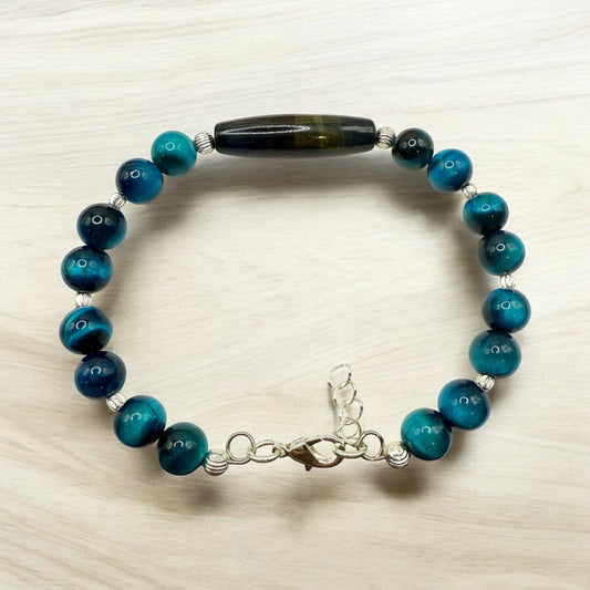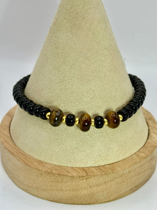 Unisex Tiger Eye & Onyx Stretch Bracelet | 7” Handmade Beaded Jewelry | Protection & Strength Gift