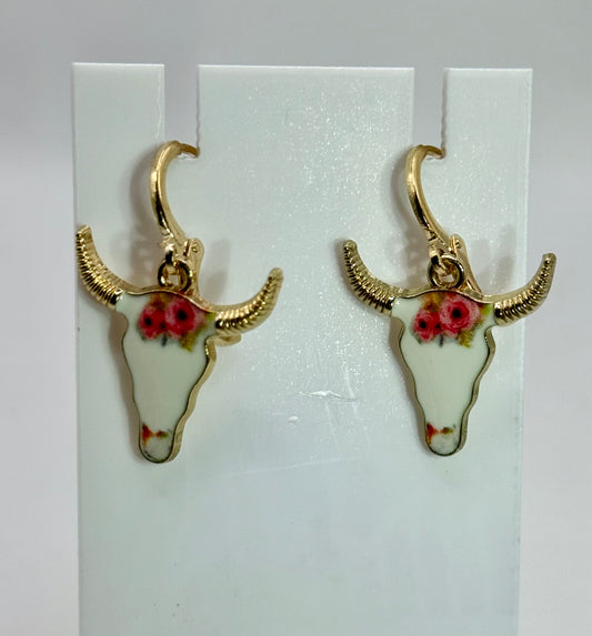 Western Bull Skull Earrings – Boho Cow Skull Dangle Earrings with Floral Design, Two Style Options, Southwestern Jewelry