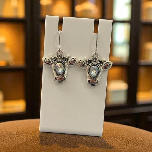 Whimsical Cow Earrings with Sparkling Crystal | Boho Farm Charm Jewelry | Country Chic Gift for Her