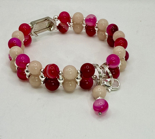 Banded Pink Agate & Luminous Stone Double Bracelet | 8” Adjustable Glow in the Dark Jewelry