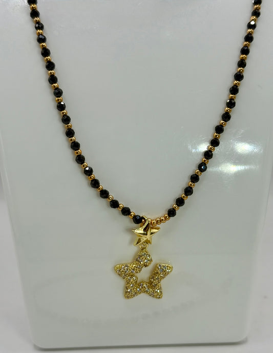 Black & Gold Star Necklace Set – 18” Necklace, 7.5” Bracelet & Free Earrings | Handmade Beaded Jewelry Gift for Her