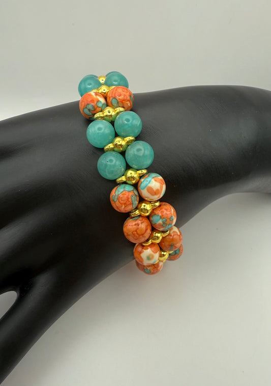 Beach Sunset and Amazonite Double Band Stretch Bracelet 7.5"