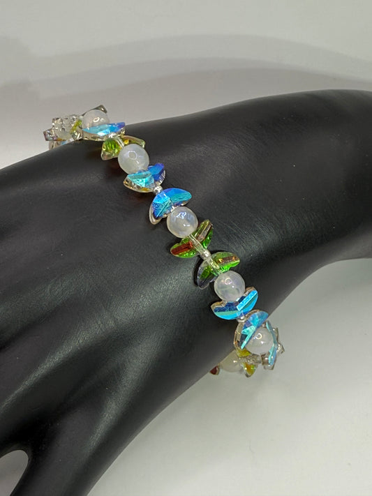 Aura Quartz Butterfly Stretch Bracelet | Electroplated Wing Beads | 8” Adjustable Handmade Jewelry