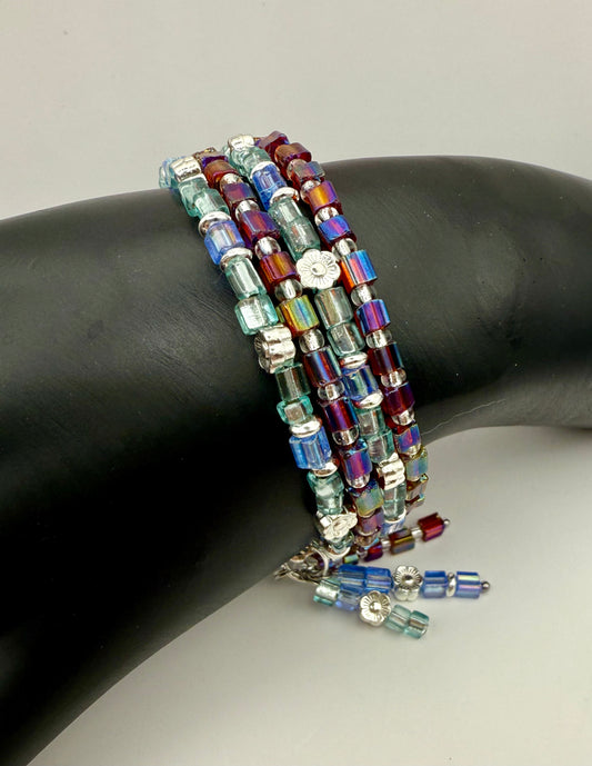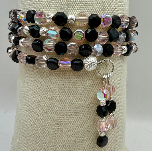 Black and Iridescent Pink Glass Wrap Bracelet - One Size Fits All