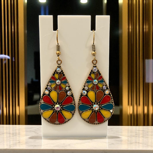 Boho Multicolor Teardrop Earrings | Retro Flower Power Dangle Drops | Vintage-Inspired Festival Jewelry | Gift for Her