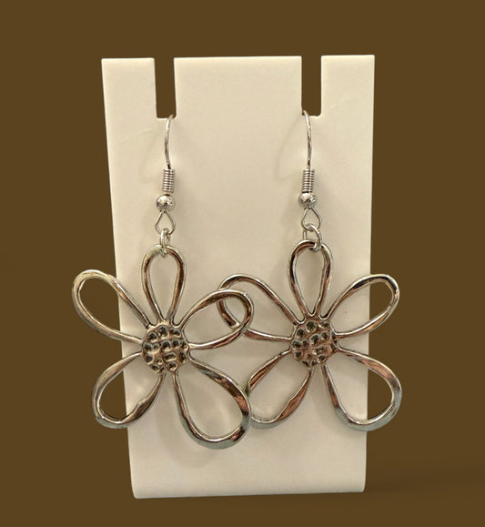 Boho Flower Necklace & Earrings Set – Silver Daisy Jewelry – Festival Statement Jewelry Gift
