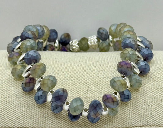 Blueberry Faceted Double Strand Stretch Bracelet 7.5"