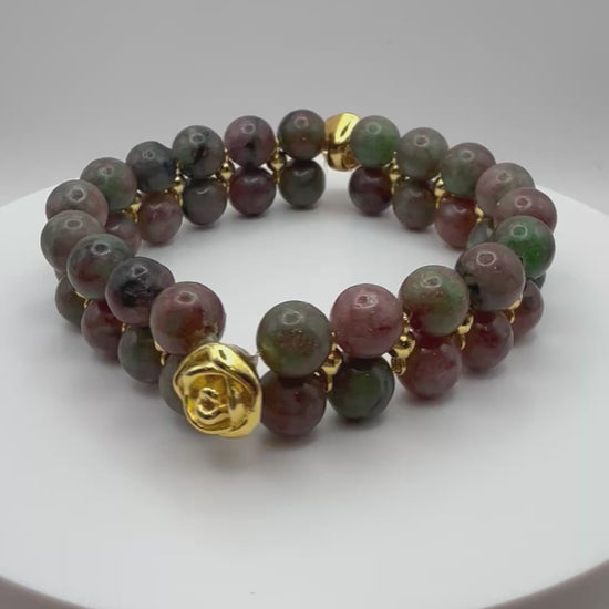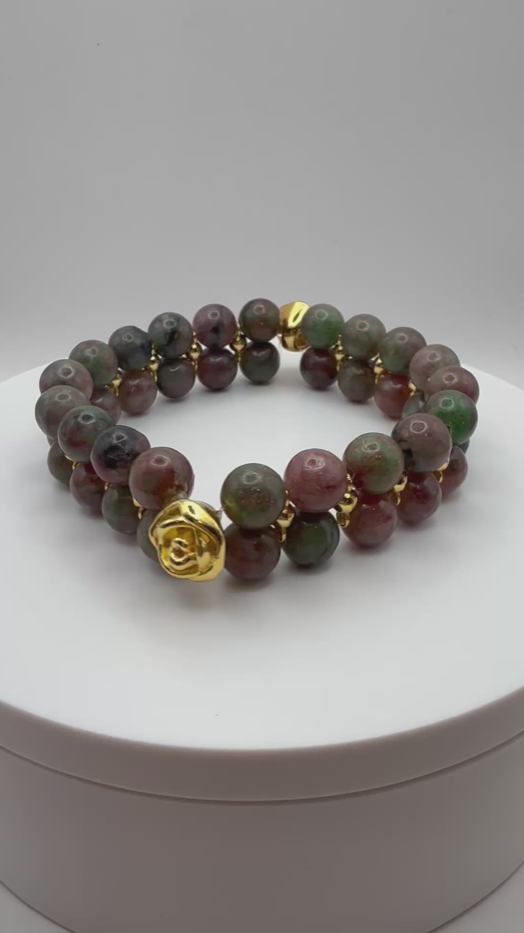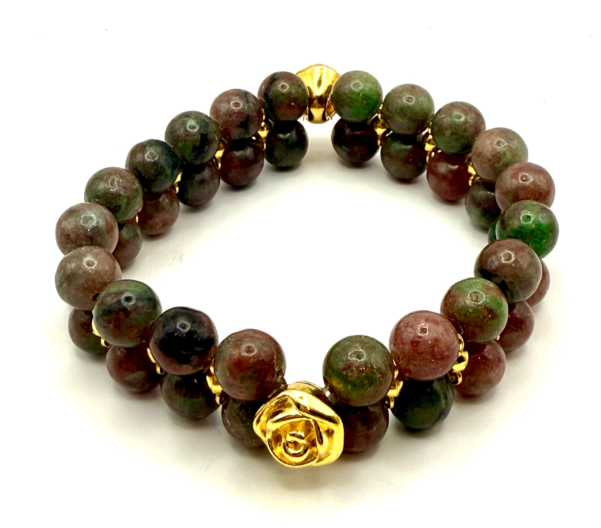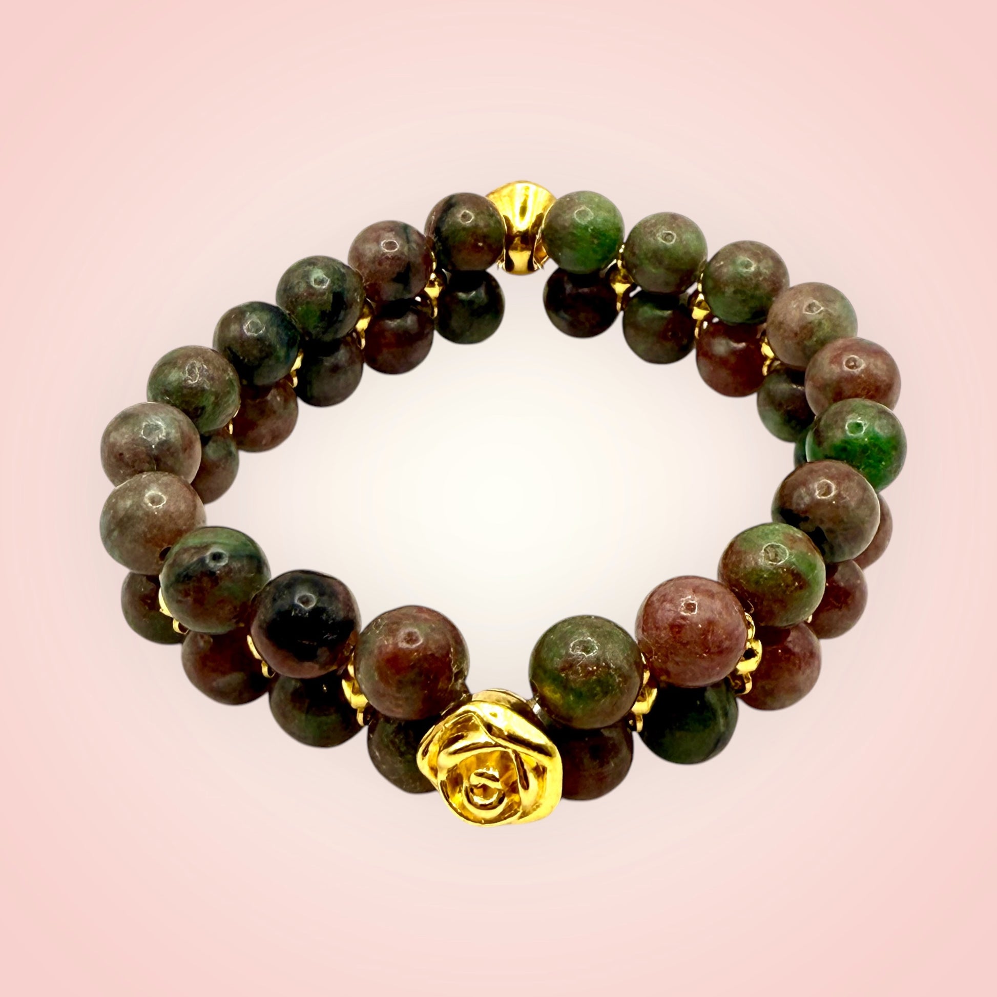 Add a pop of color and charm with our Colorful Unakite Bracelet! Featuring a stunning golden rose and accents, this uniquely designed double strand bracelet is sure to catch some attention. Plus, at 7.75", it's the perfect size for any wrist. And don't forget, resizing is always free at Luckycharm Boutique!