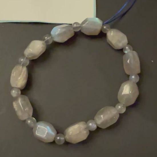 DESTASH -Labradorite Freeform Barrel Shape Bead 11 barrel and 11 small round