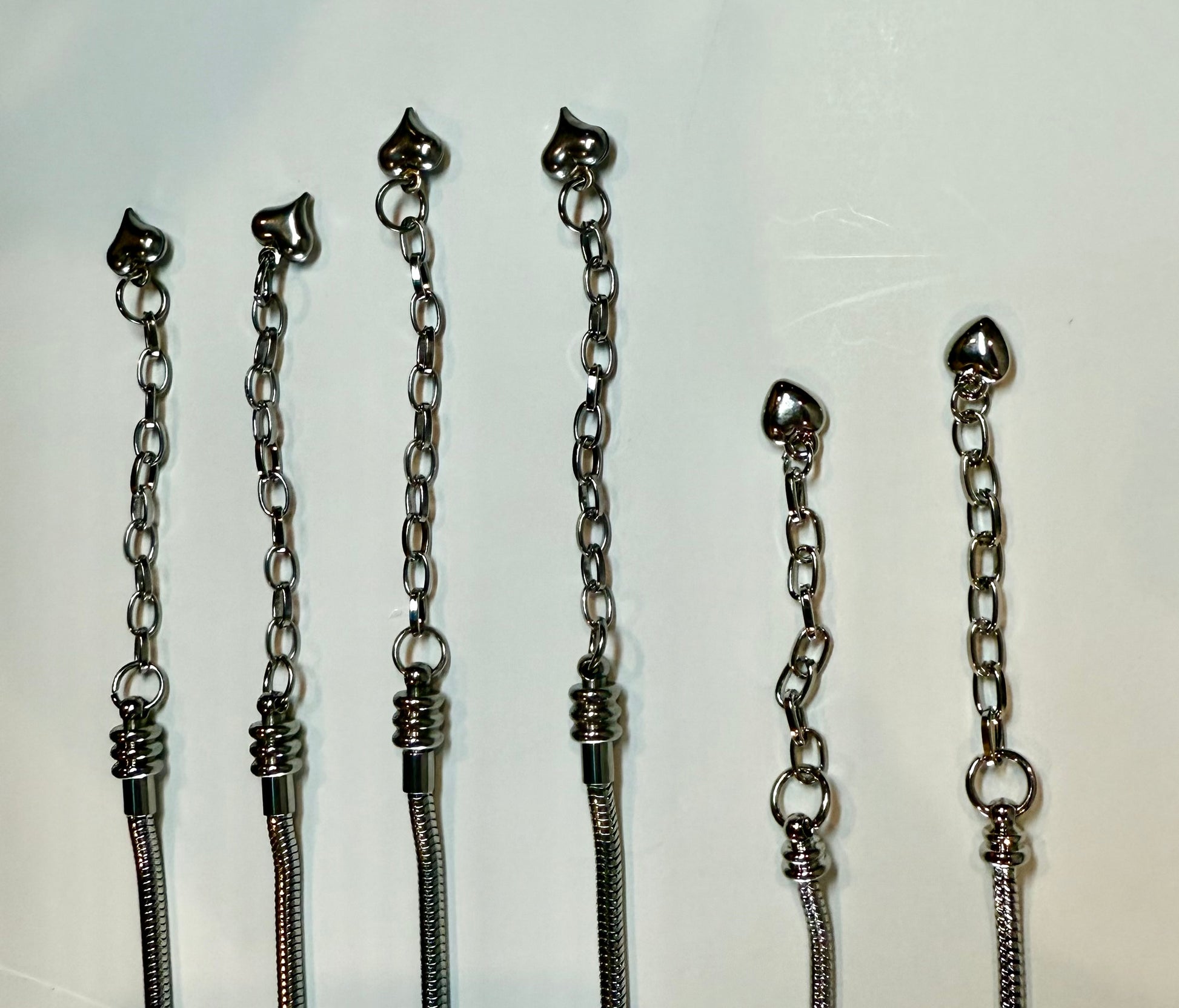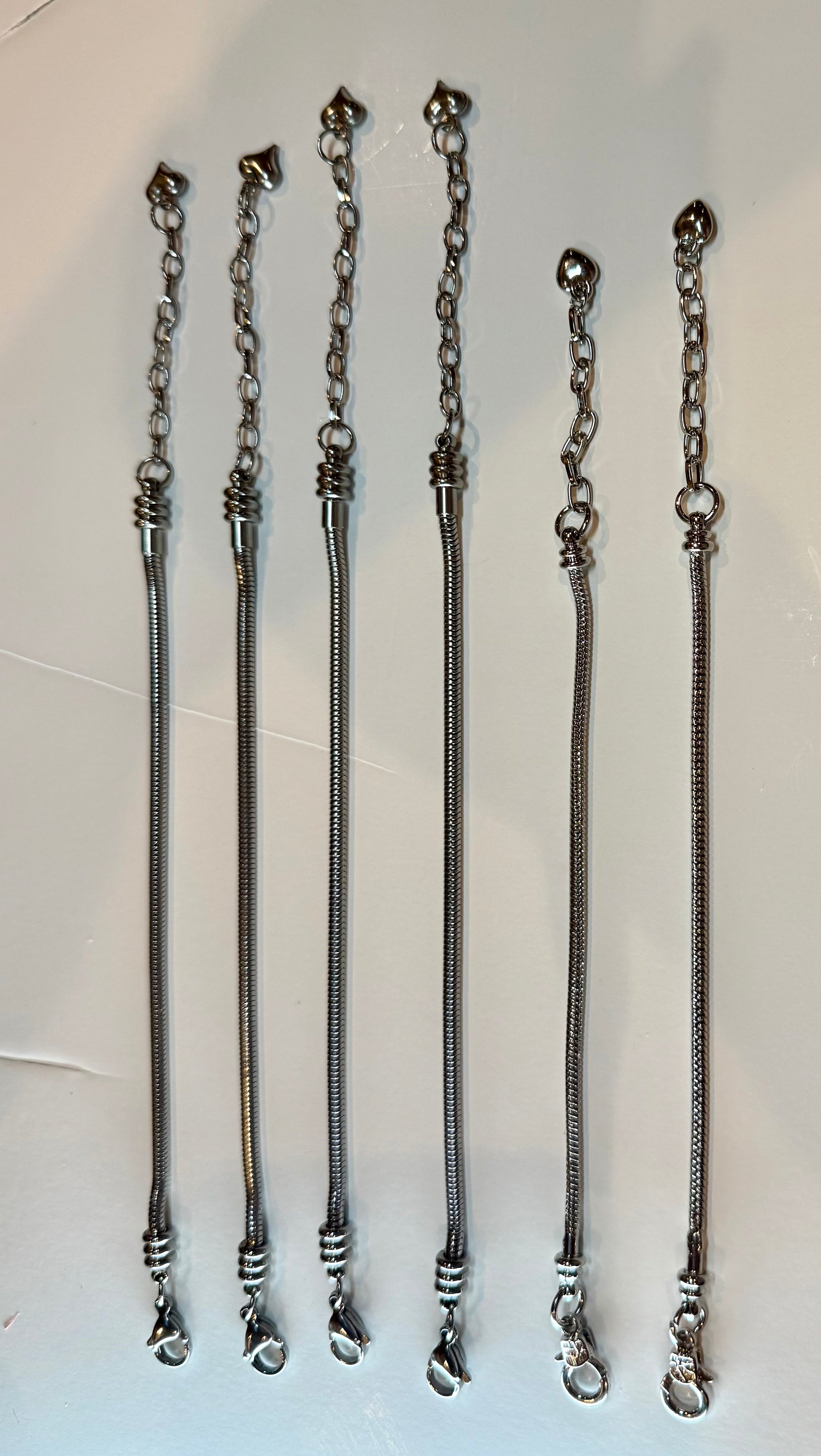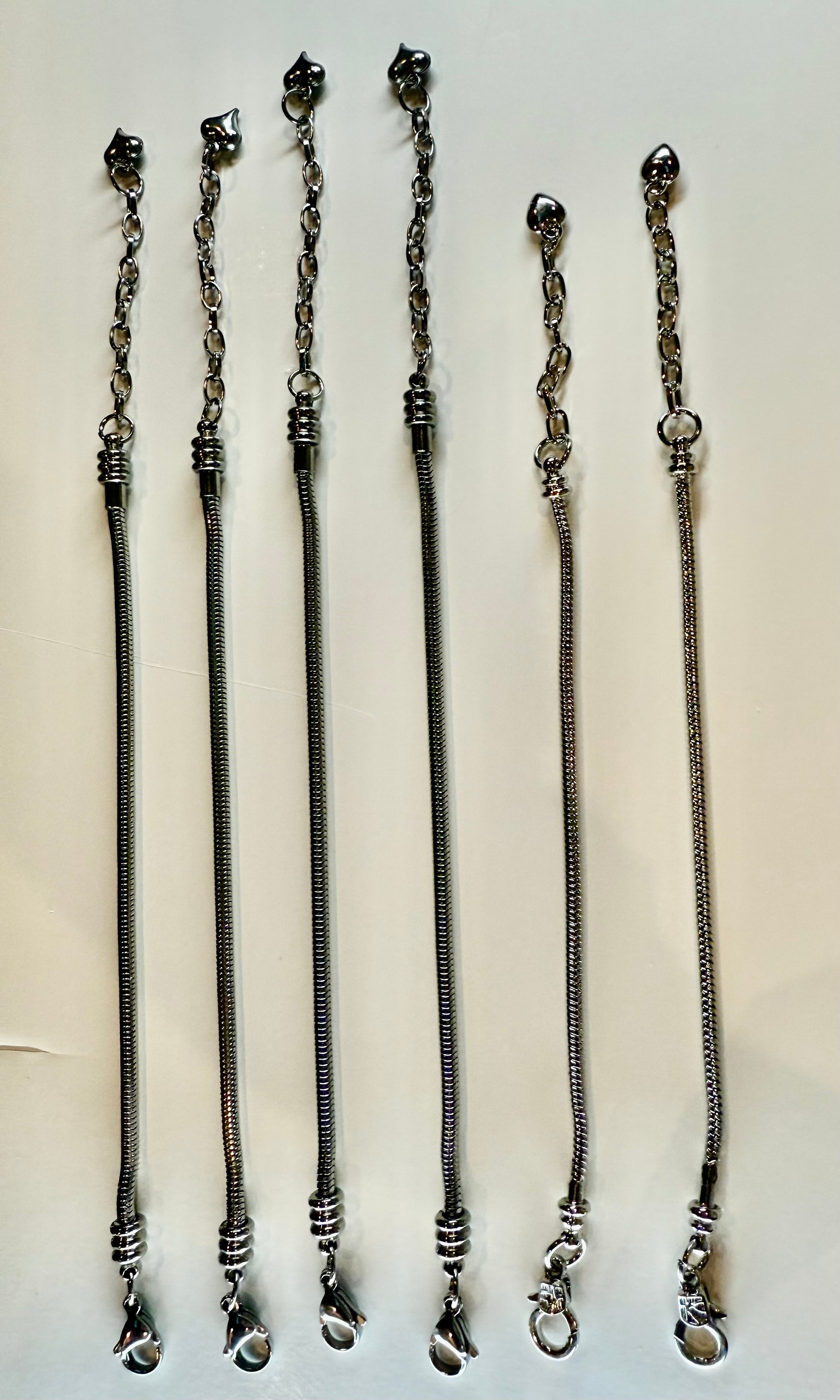 DESTASH - Stainless Steel Pandora-Style Charm and Slider Bracelets approximately 6.5" plus extender with heart