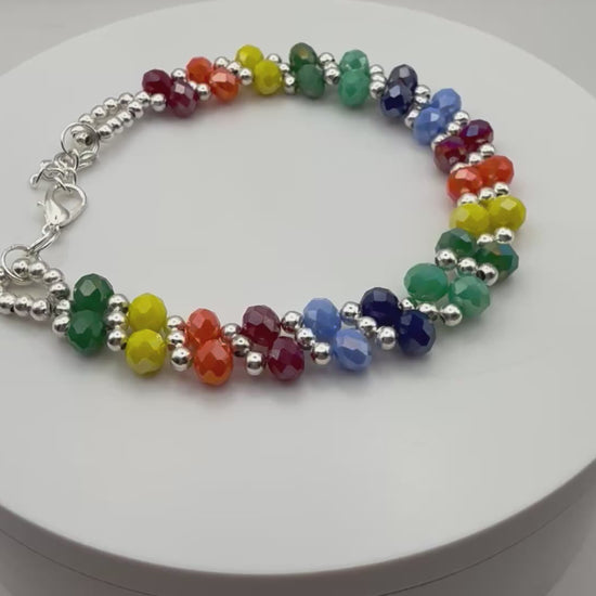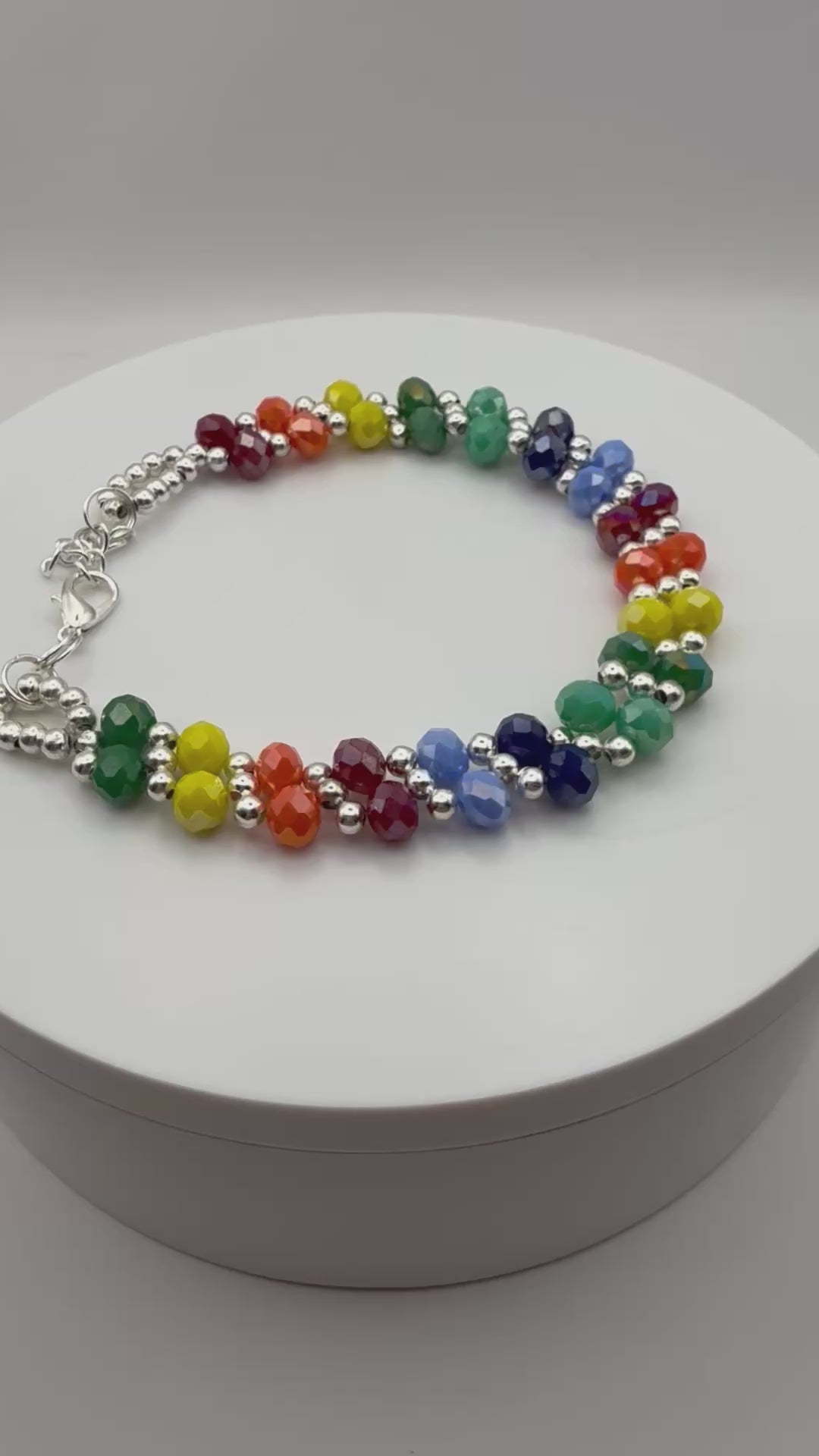 Sport this vibrant Double Band Rainbow Bracelet from Luckycharm Boutique year round. Its 7.5" length is perfect for daily wear and showcases your pride in style. This colorful accessory can also be resized at no extra cost to fit your wrist perfectly. A must-have for any bracelet lover.
