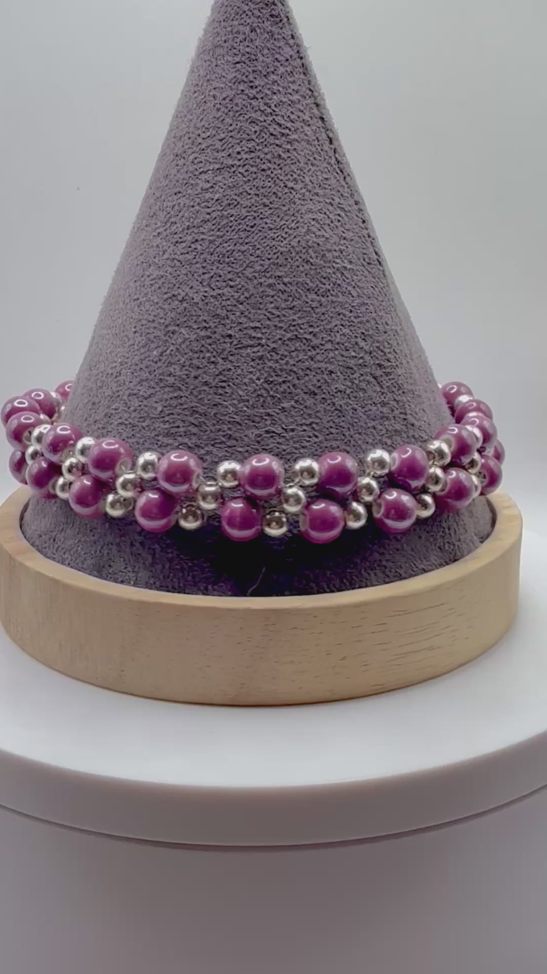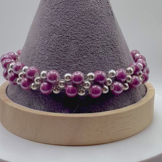 purple glass bead bracelet, double band bracelet, layered bead bracelet, pearlized bead jewelry, purple beaded bracelet, handmade clasp bracelet, elegant bracelet for women, 8 inch bracelet, statement jewelry, handcrafted bracelet gift