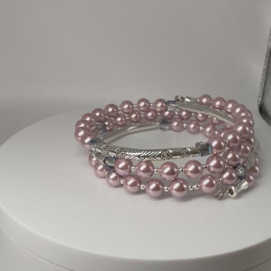 Dusty Rose Pearl Beaded Wrap Bracelet – One Size Fits Most - Memory Wire with Silver Accents