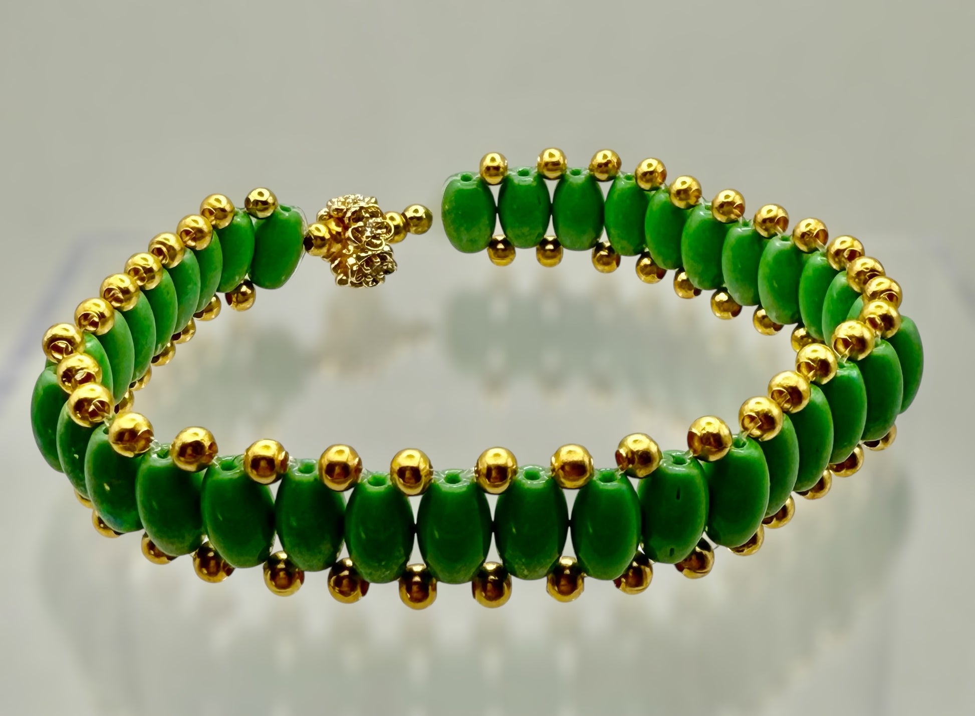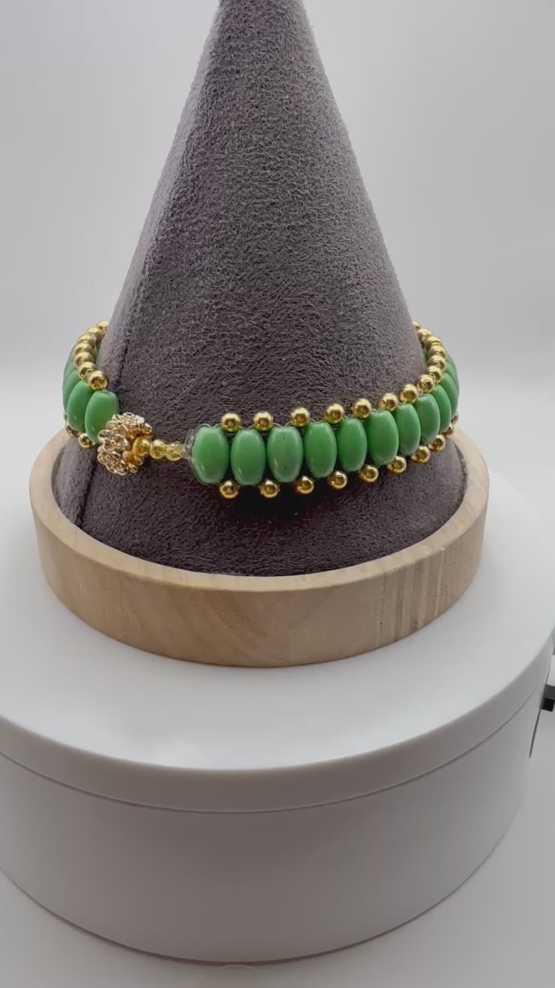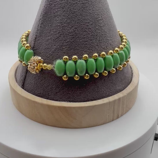 This bracelet blends fresh, eye-catching green tones with classic gold details for a look that’s both bold and timeless. Dress it up for special occasions or wear it casually to brighten any outfit.