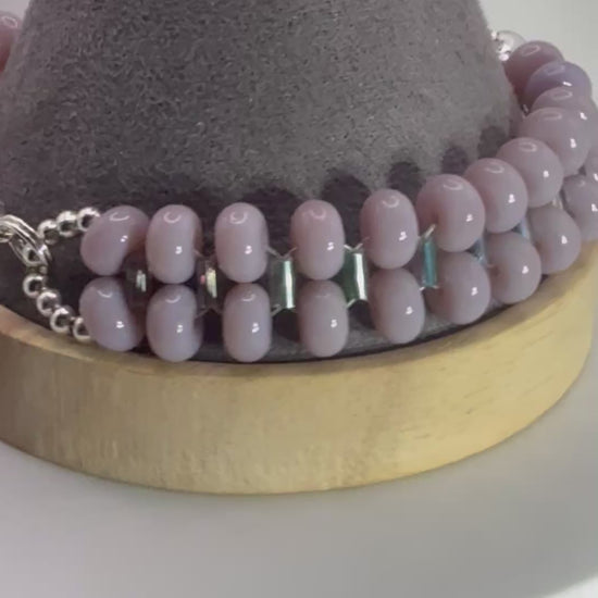 mauve glass bead bracelet, double band bracelet, handmade clasp bracelet, silver floral clasp jewelry, adjustable glass bracelet, elegant beaded bracelet, flower charm bracelet, gift for her, unique handmade jewelry, Luckycharm Boutique TX
