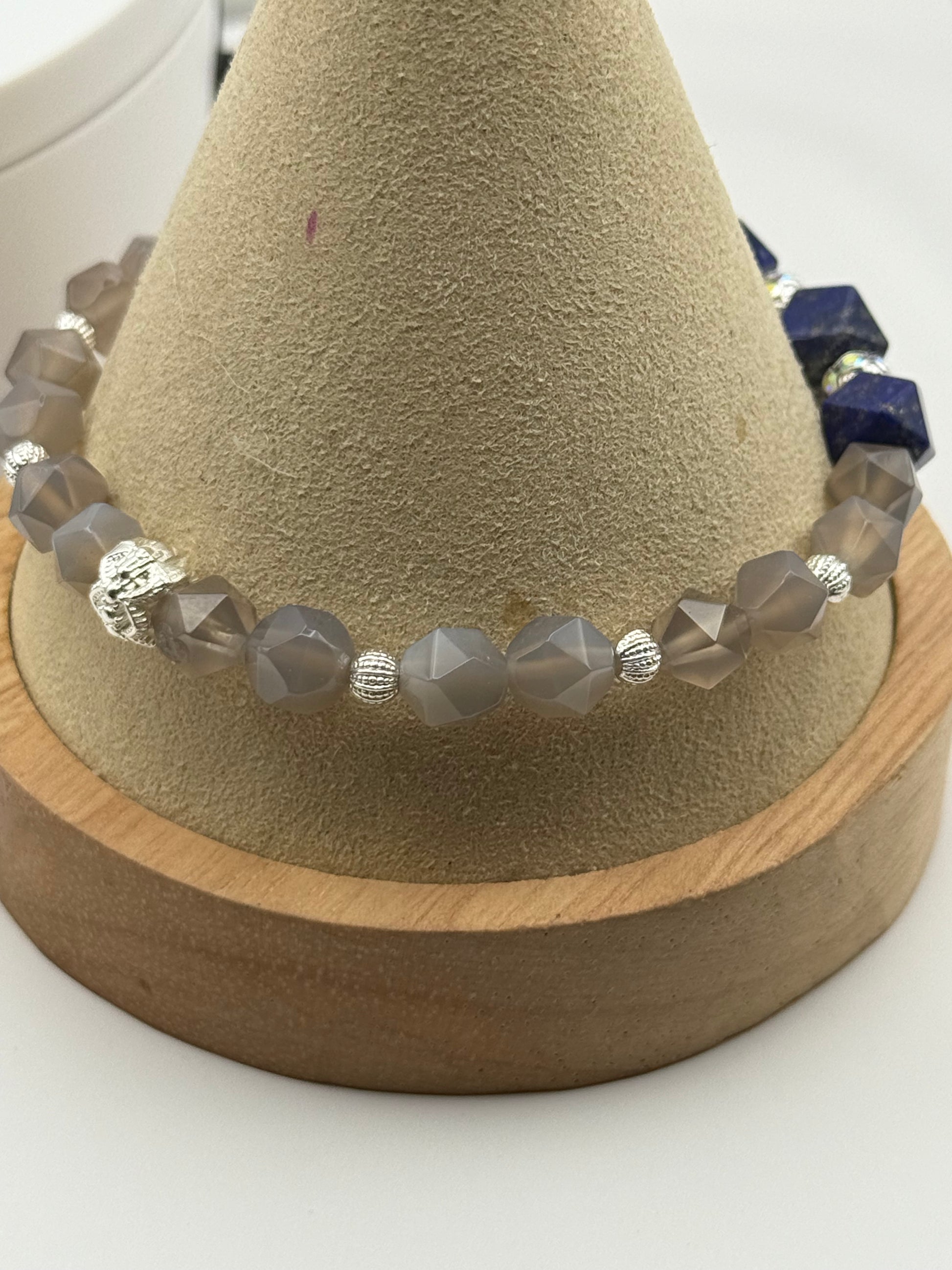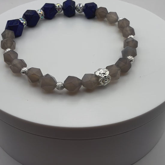 Enhance your style and well-being with our Lapis Lazuli and Labradorite Stretch bracelet. The stunning combination of cubed and faceted stones not only creates a beautiful accessory, but also harnesses the powerful healing properties of lapis lazuli and labradorite. Resizable upon request for a perfect fit.