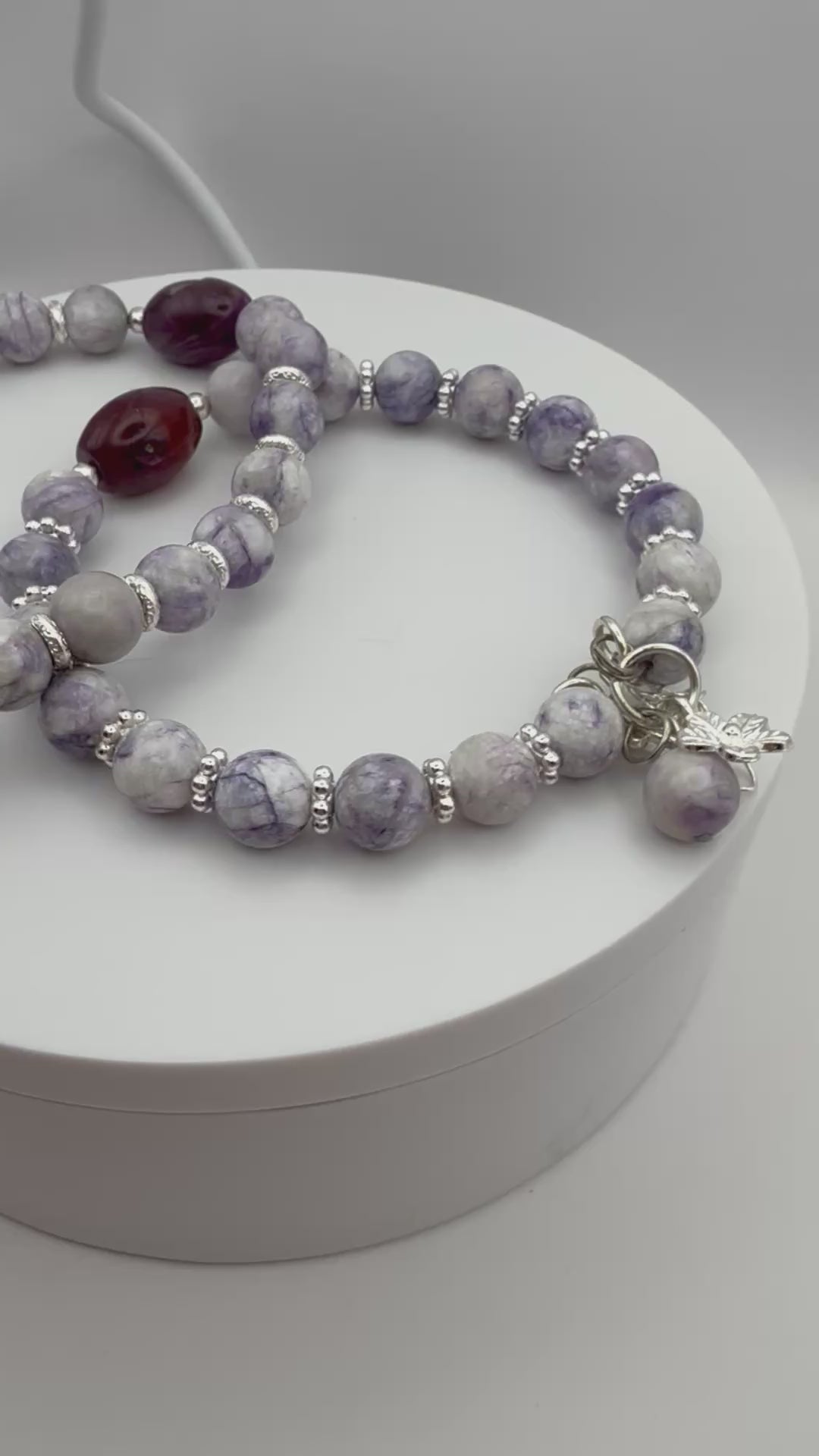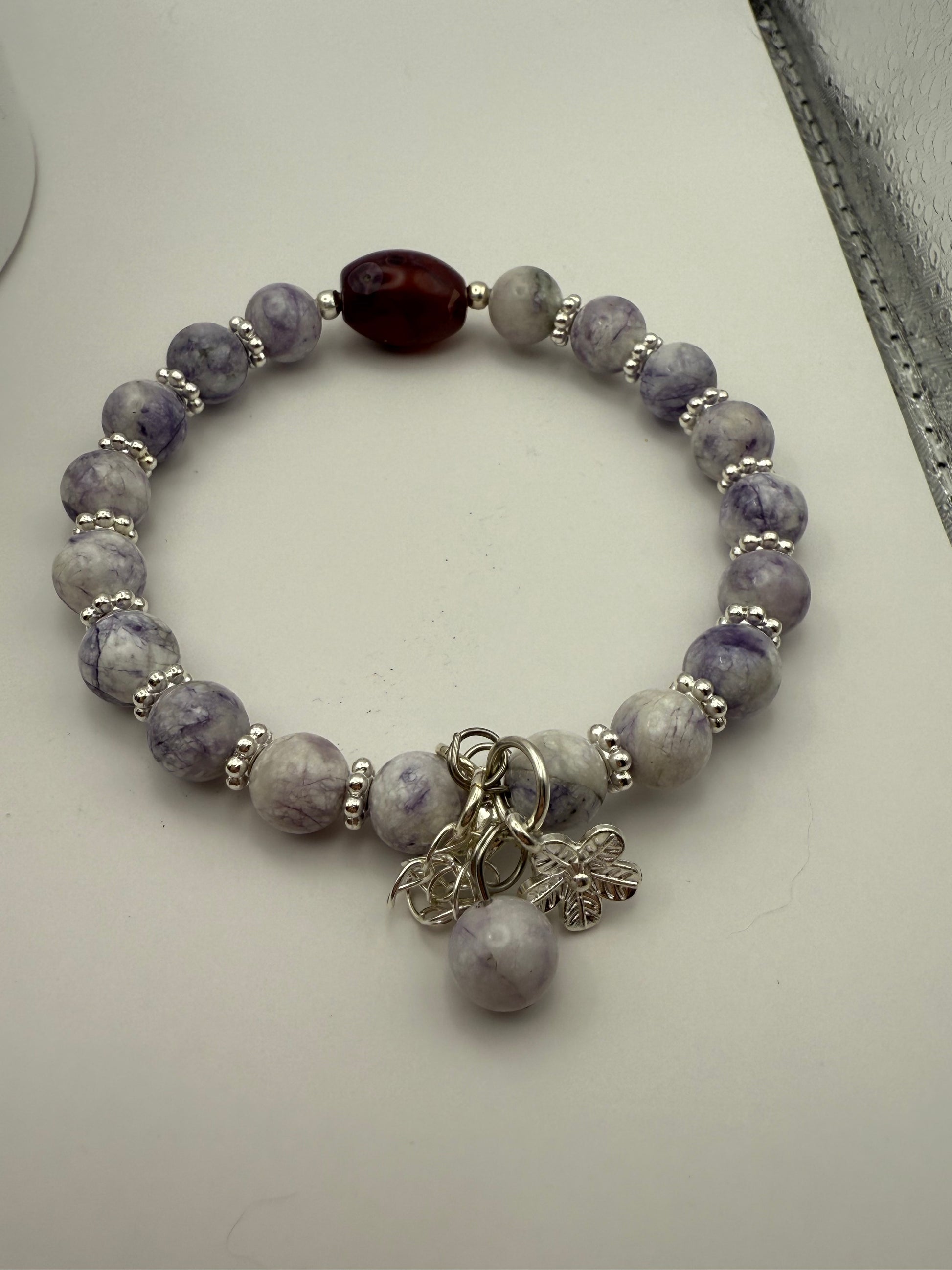 Ease stress and add a touch of elegance to any outfit with our Lavender Peace Jasper Bracelets. These gorgeous lavender and white stones are known for their calming properties, perfect for a casual day or a special occasion. Let the peace Jasper bring balance to your life.