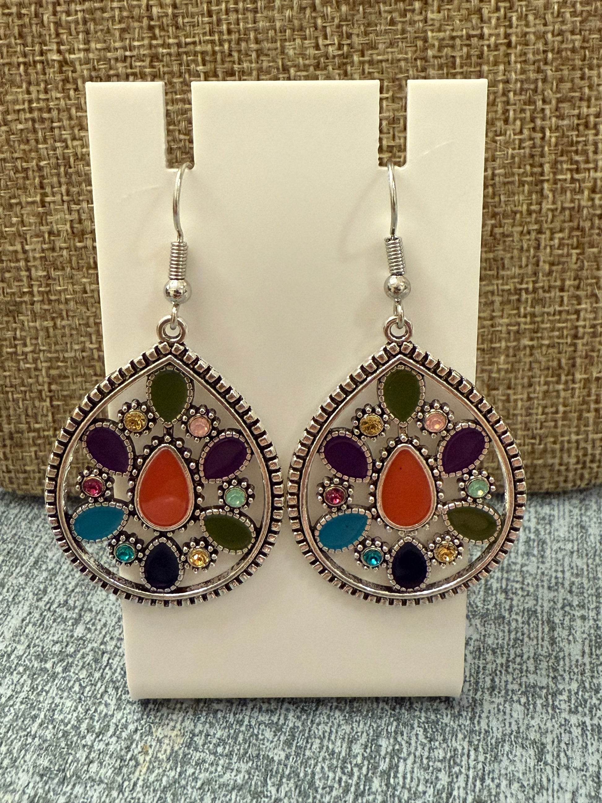 - Teardrop statement drops with multicolor inlays
