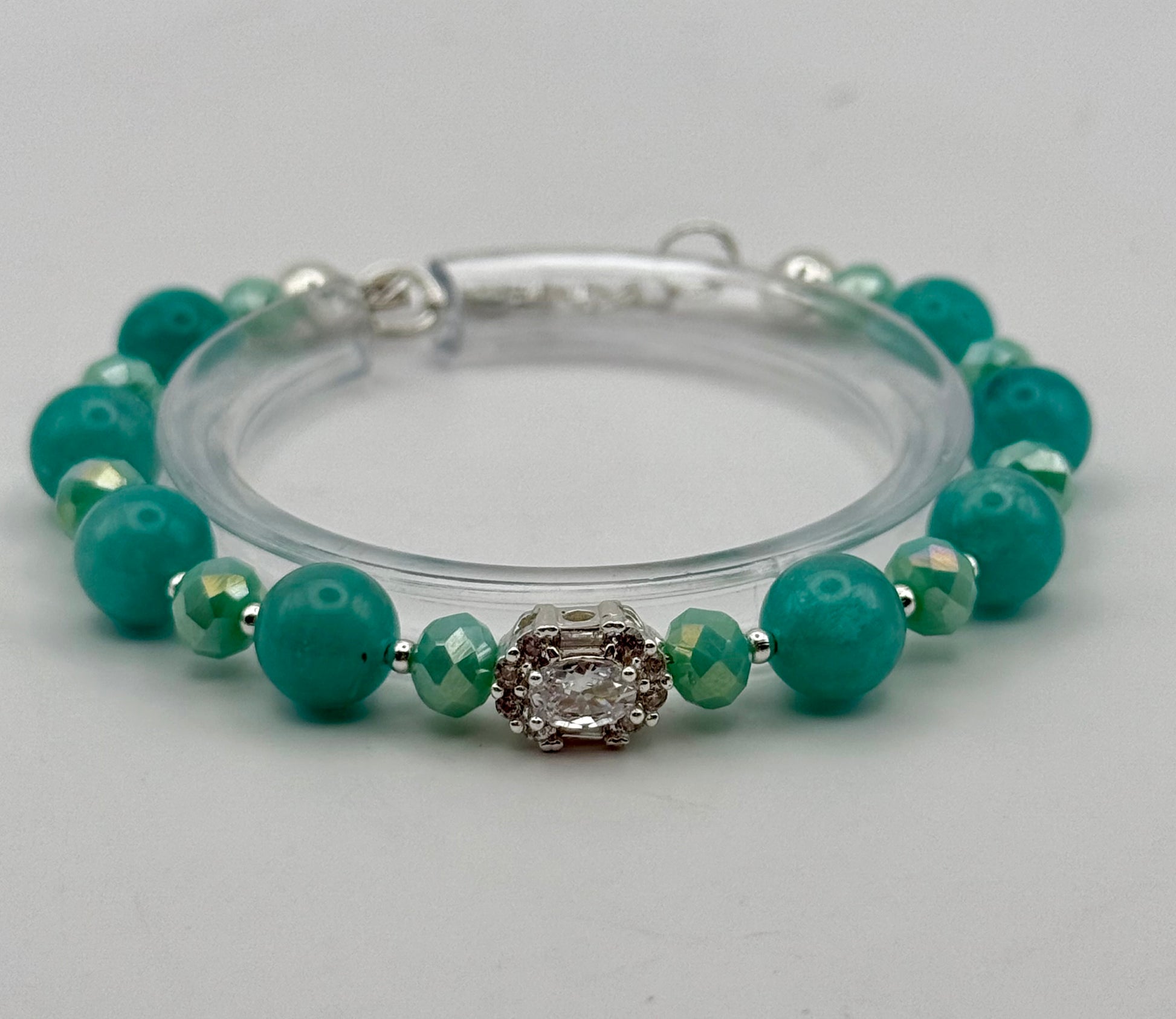 Expertly crafted with ocean-inspired hues, this Ocean Dyed Quartz Bracelet is perfect for adding a touch of elegance to any outfit. Featuring silver accents and a sparkling rhinestone focal, this bracelet is designed to fit a 7.5" wrist. Plus, as with all bracelets at Luckycharm Boutique, it can be resized at no extra charge for a perfect fit.
