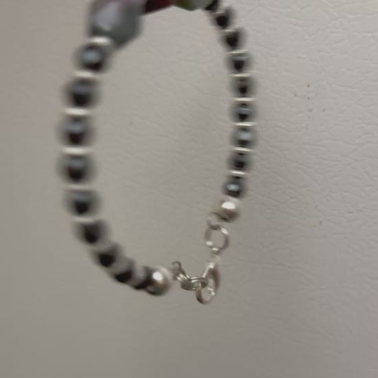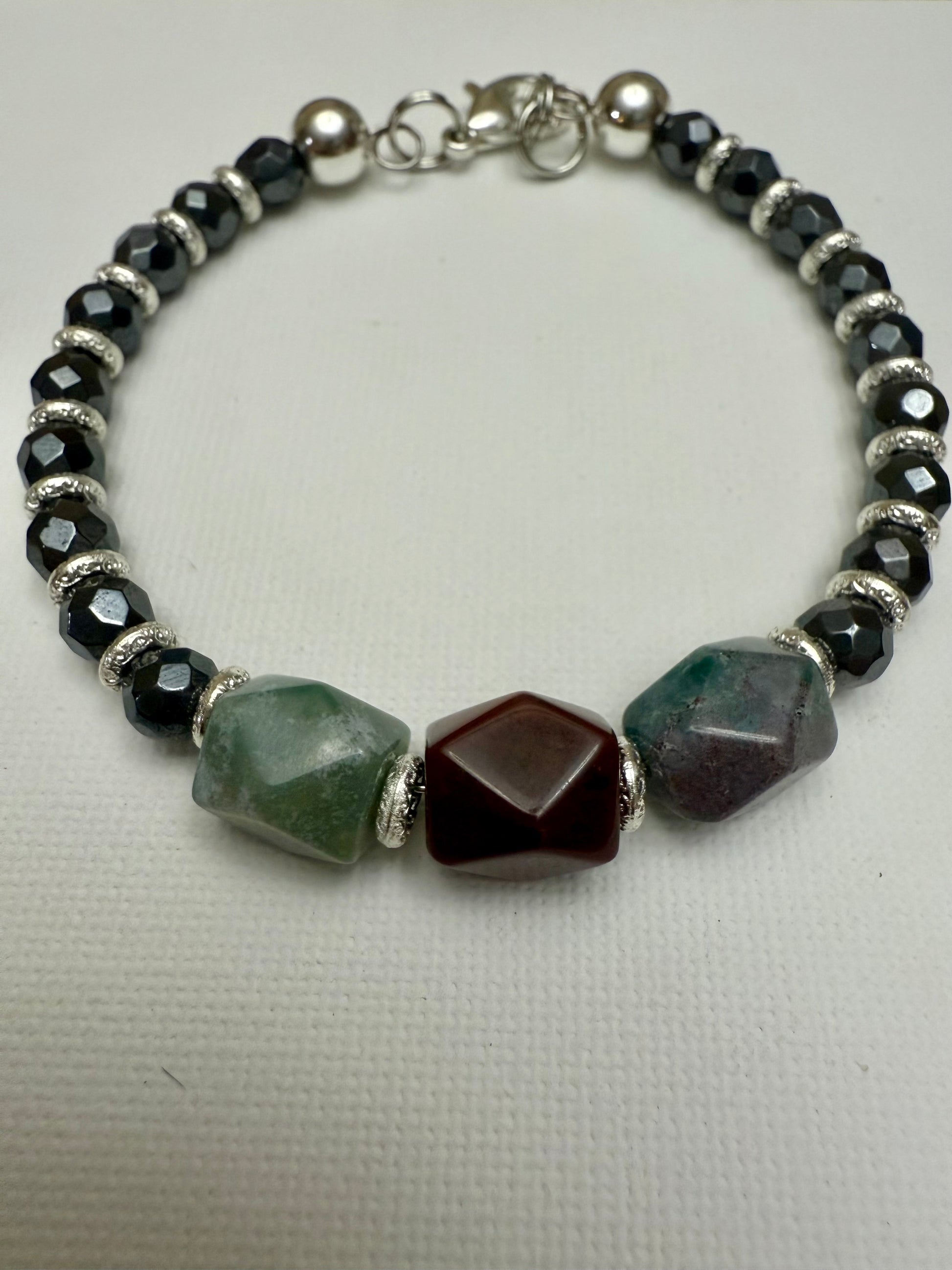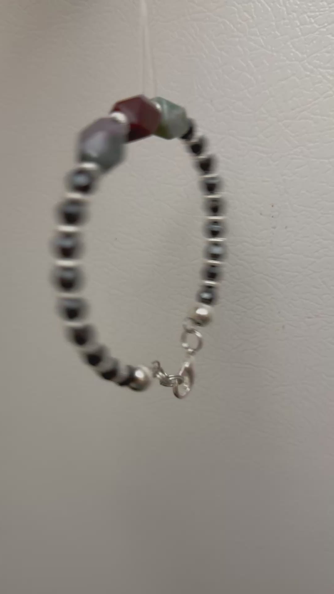 Ocean Jasper and Black Obsidian Bracelet 7.5"