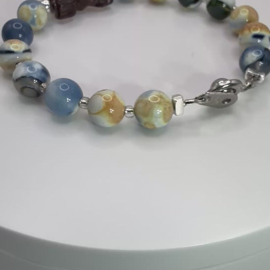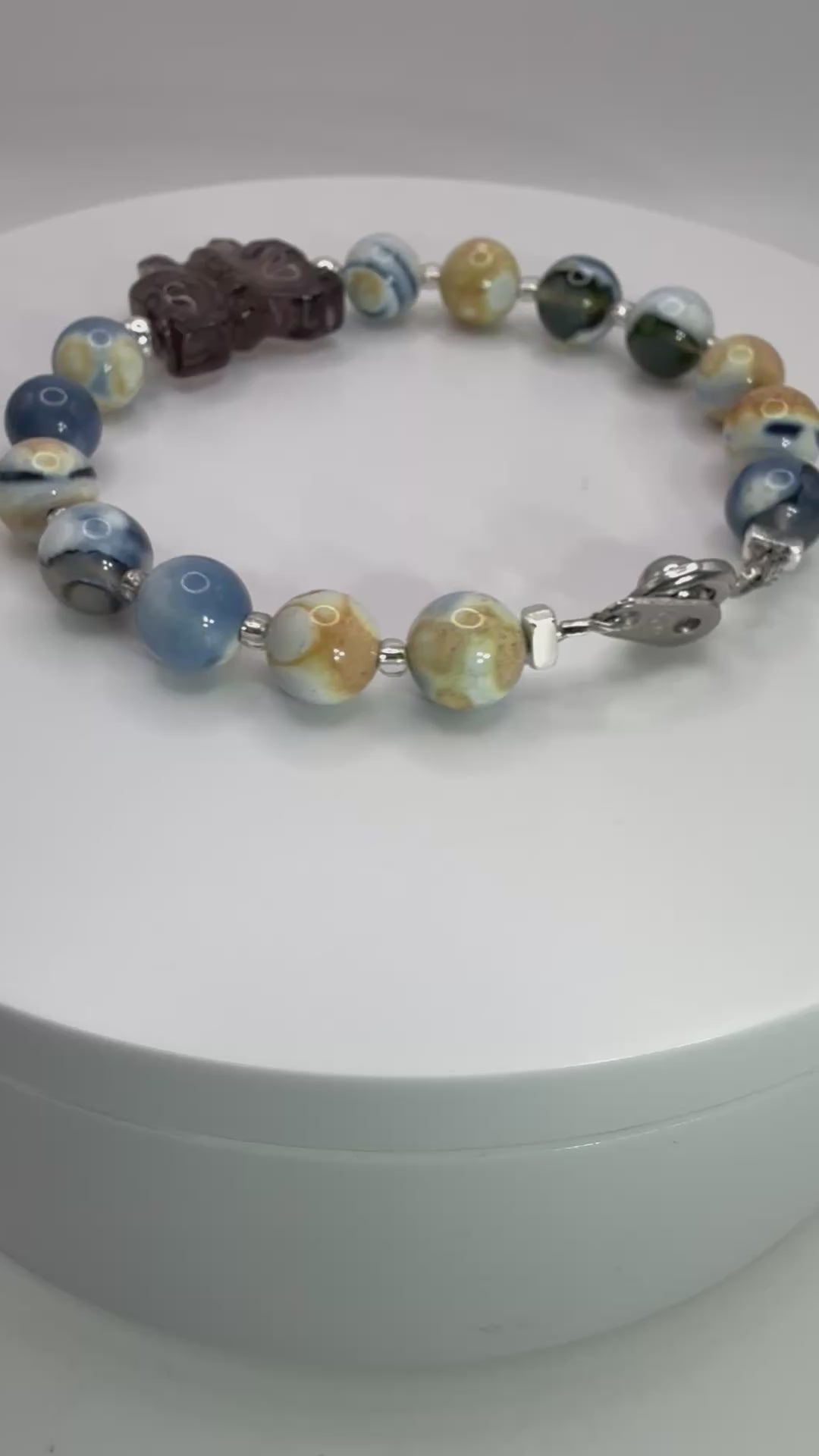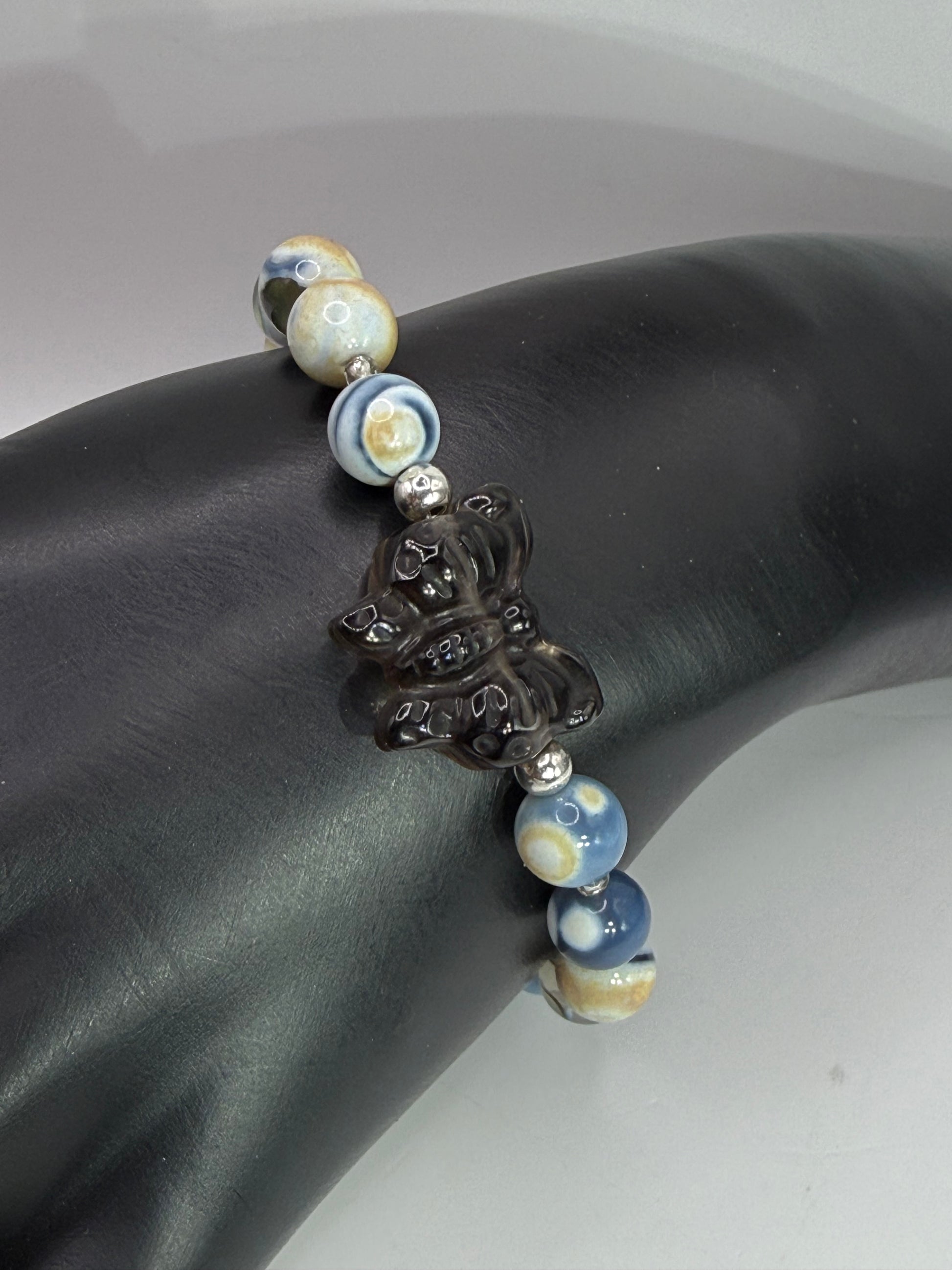 Orca Agate Bracelet with Smoky Quartz Butterfly Focal – 7” Clasp – Natural Gemstone Jewelry