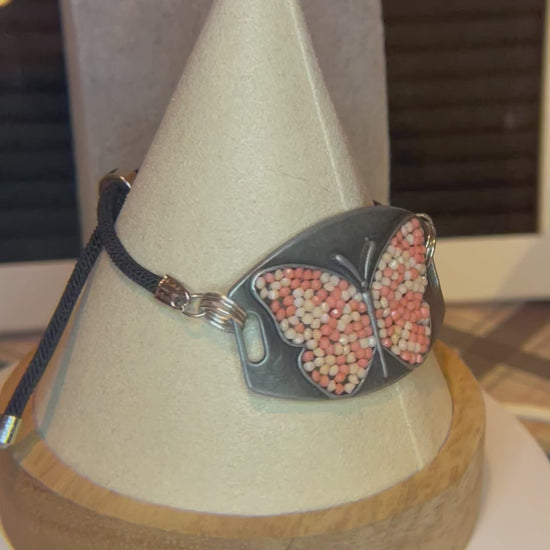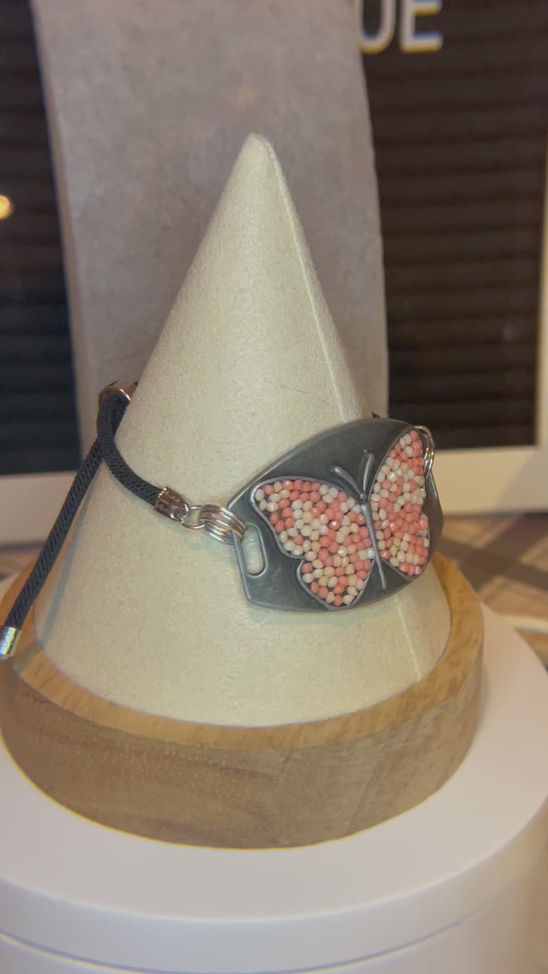 This charming bracelet features a silver buckle and a delicate peach butterfly theme. The adjustable cord allows for a perfect fit and versatility, making it a lovely addition to any outfit, whether it's jeans and a t-shirt or a night out. Embrace your feminine side with this beautiful piece!