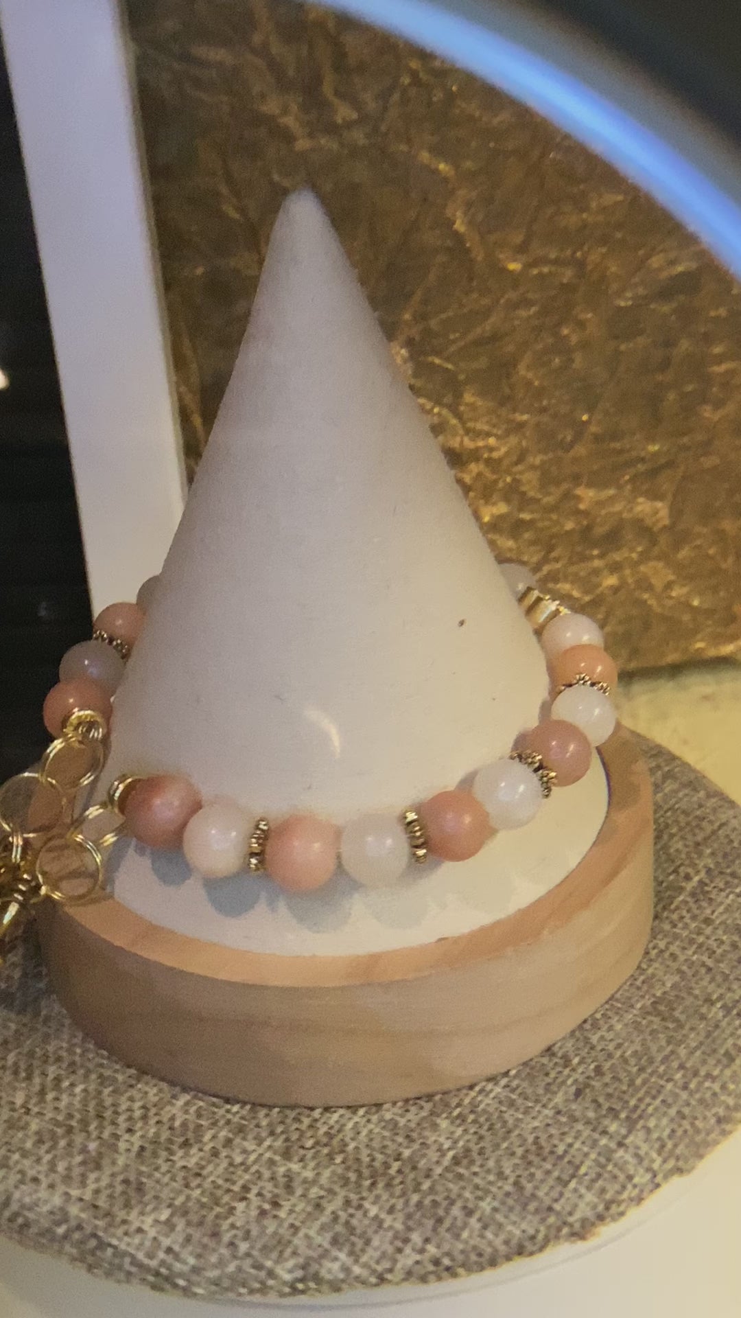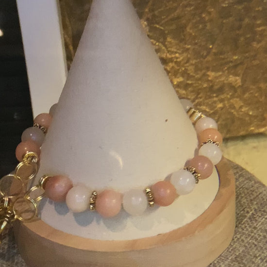 Add a touch of playful elegance to your outfit with our Pink Aventurine and Golden Flower Bracelet! The pretty pink aventurine beads are accented with delicate golden accents and a focal point of a golden flower. This unique bracelet is sure to turn heads and can be resized upon request for the perfect fit.
