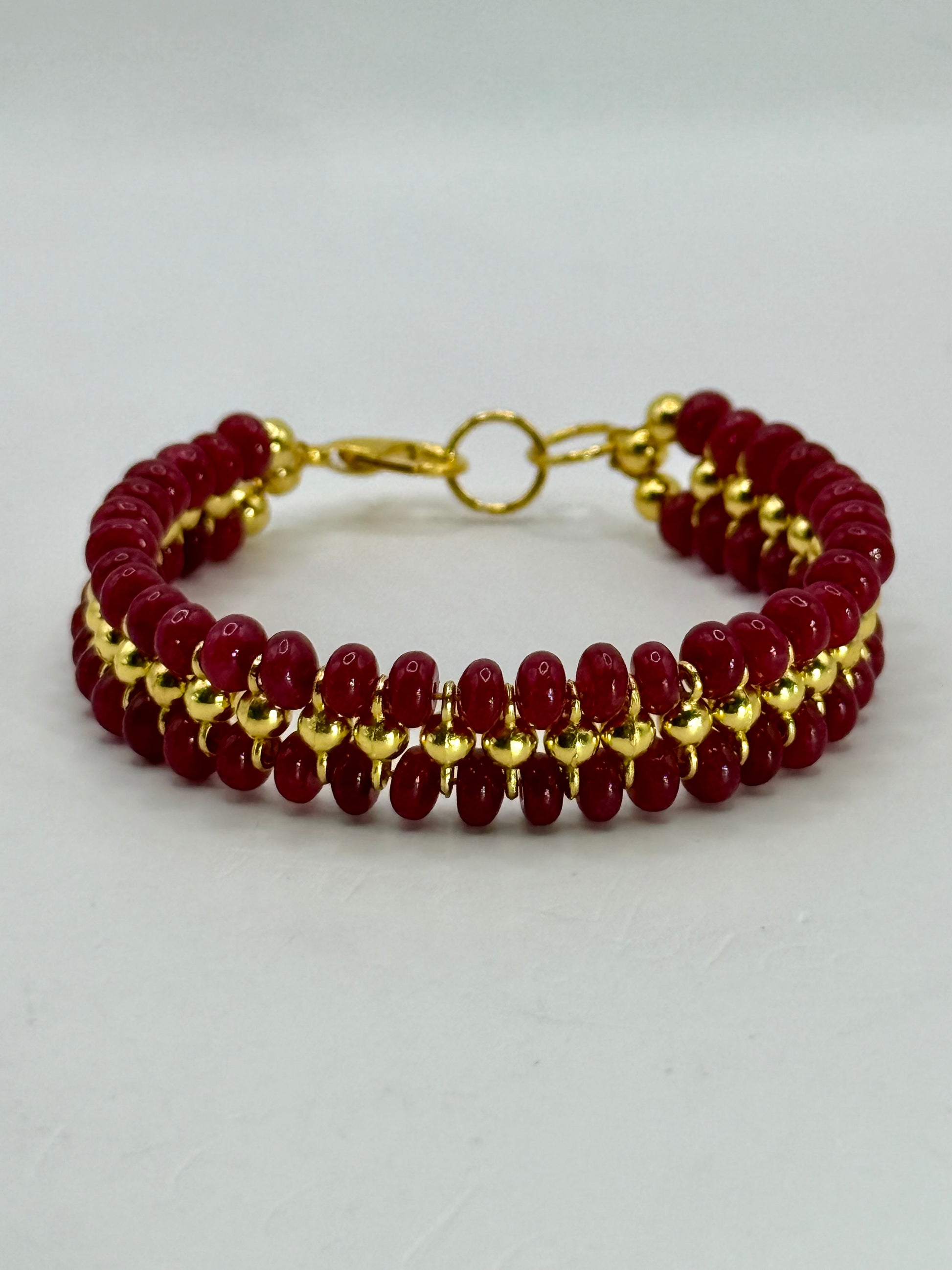 ruby gemstone bracelet, natural ruby bracelet, ruby and gold bracelet, handmade gemstone jewelry, ruby birthstone jewelry, July birthstone gift, luxury bracelet for her, LuckyCharm Boutique TX, custom size bracelet, ruby jewelry handmade