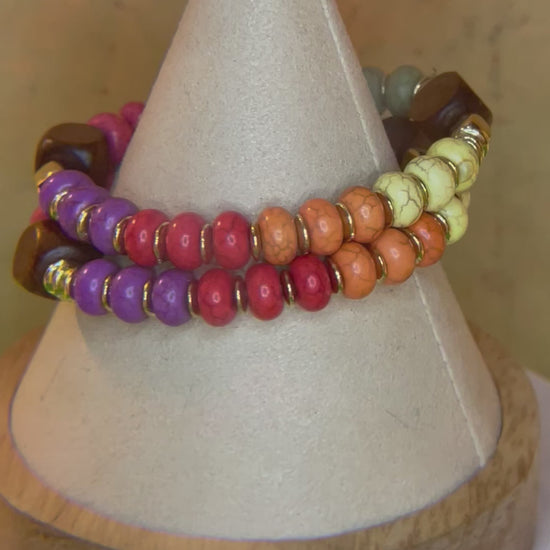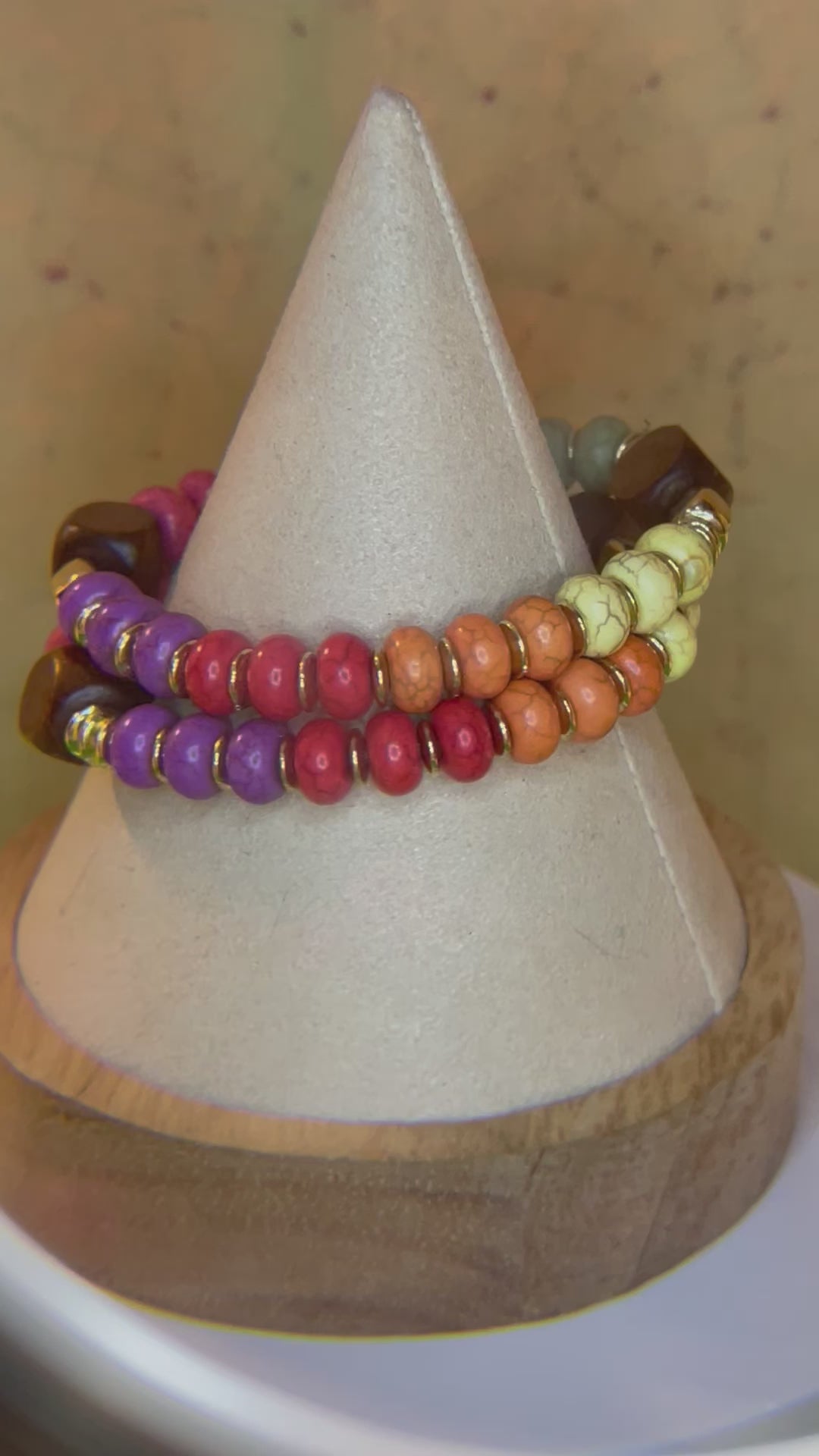 Add a sprinkle of sweetness to your wardrobe with our Sweet Tooth elastic bracelet set of 2! These bracelets, made of a rainbow of wooden beads, look like delicious candy and will add a playful and cheerful touch to any outfit. Brace yourself for compliments! Sizes at 6” bit can be modified at buyer’s request.