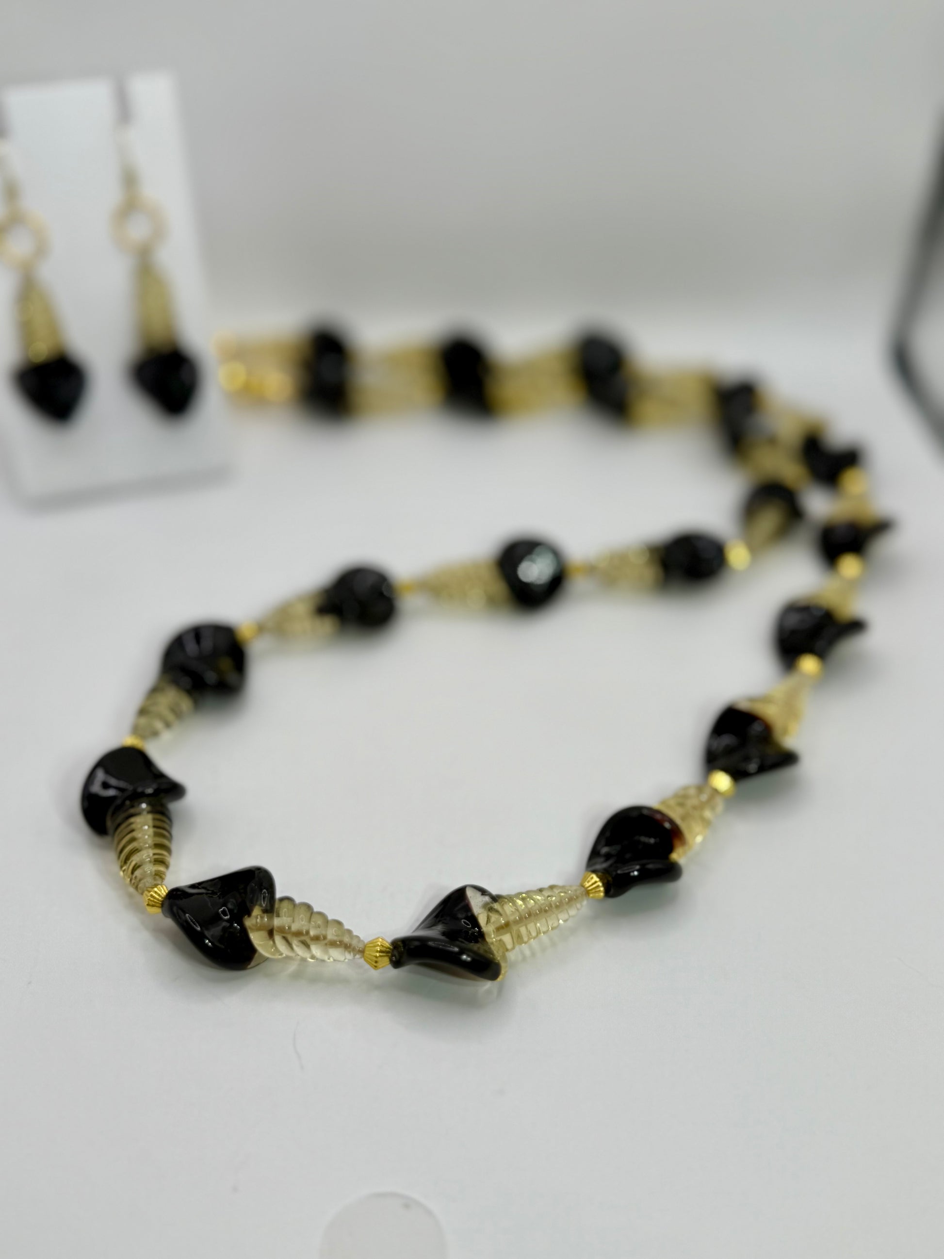 Timeless Black and Gold Necklace Set – 22” Elegant Statement Necklace with Matching Earrings, Handmade Beaded Jewelry, Gift for Her